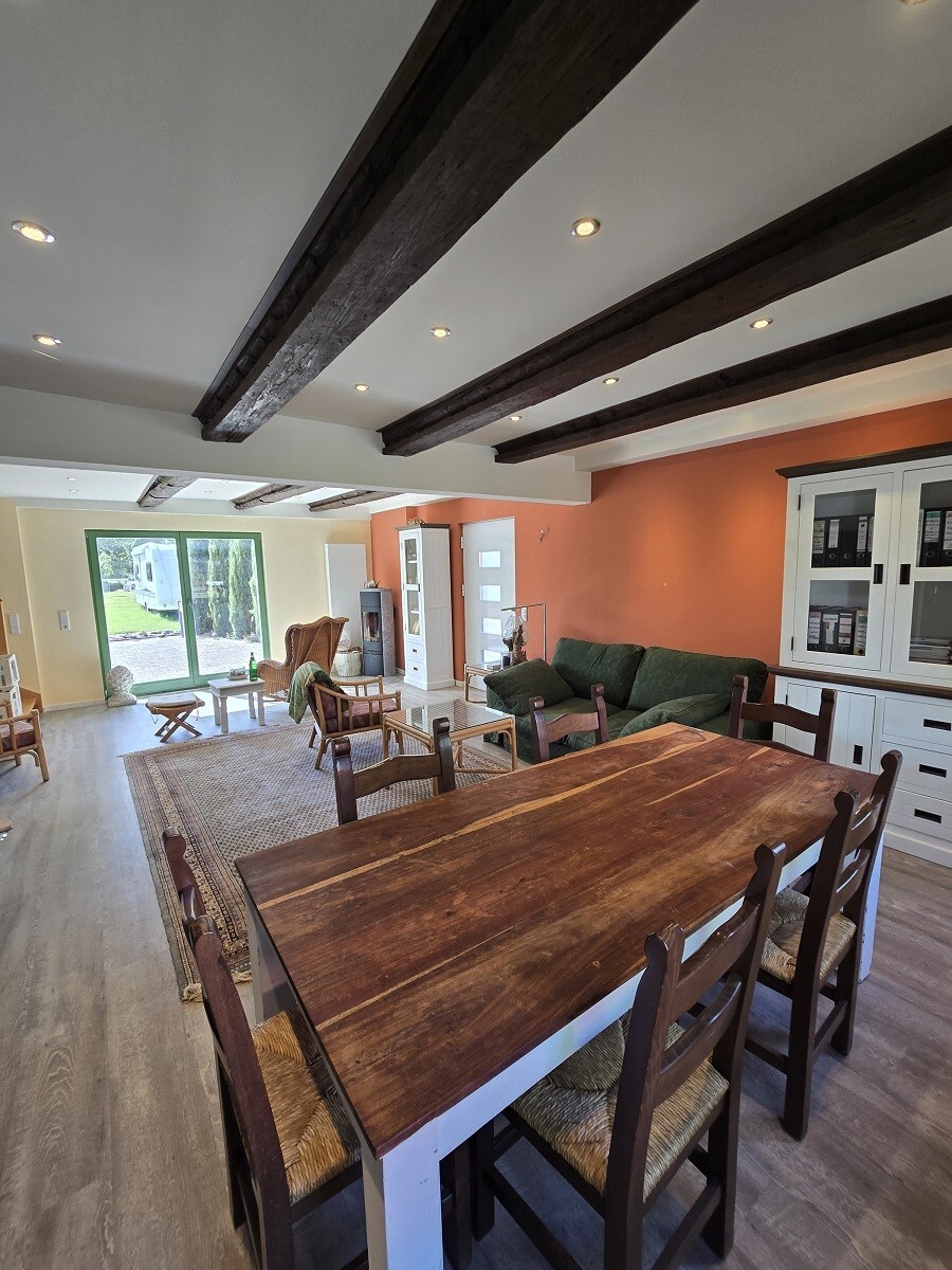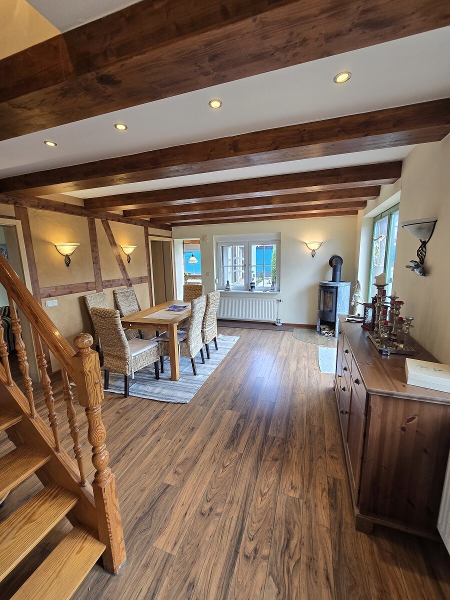 Wohn- und Esszimmer möbliert inkl. Kaminofen