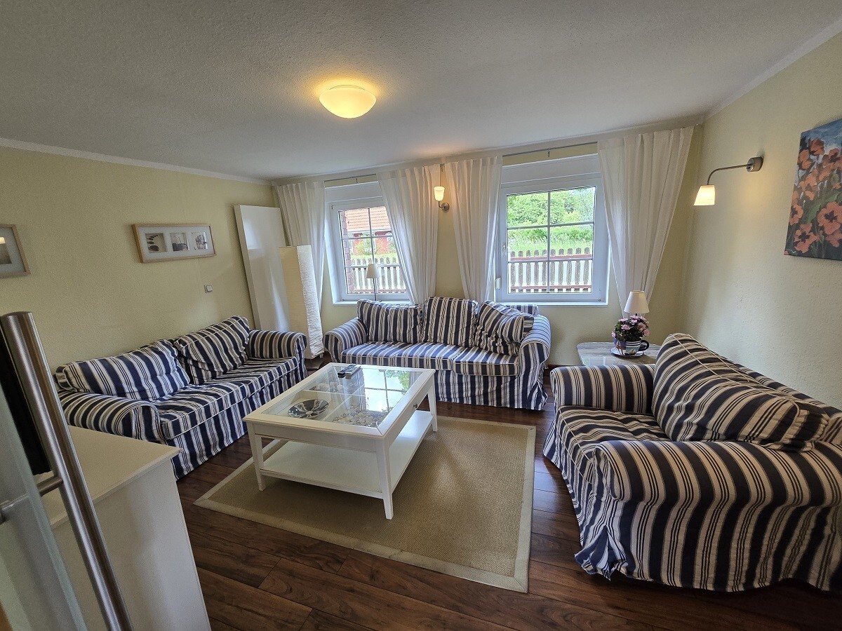 Zum Verkauf steht ein Zweifamilienhaus ( voll möbliert) im idyllischen Ort Zudar, auf der wunderschönen Insel Rügen. Ursprünglich im Jahr 1870 erbaut, präsentiert sich das Anwesen heute in einem vollständig sanierten Zustand, der den historischen Charme mit modernem Wohnkomfort vereint.Auf einer großzügigen Grundstücksfläche von ca. 1.000 m² gelegen, bietet das Haus eine Wohnfläche von ca. 200 m², verteilt auf 1,5 Etagen. Mit insgesamt 8 Zimmern, darunter 4 geräumige Schlafzimmer und 2 stilvoll ausgestattete Badezimmer, eignet es sich ideal für Familien oder solche, die großzügigen Raum zu schätzen wissen.